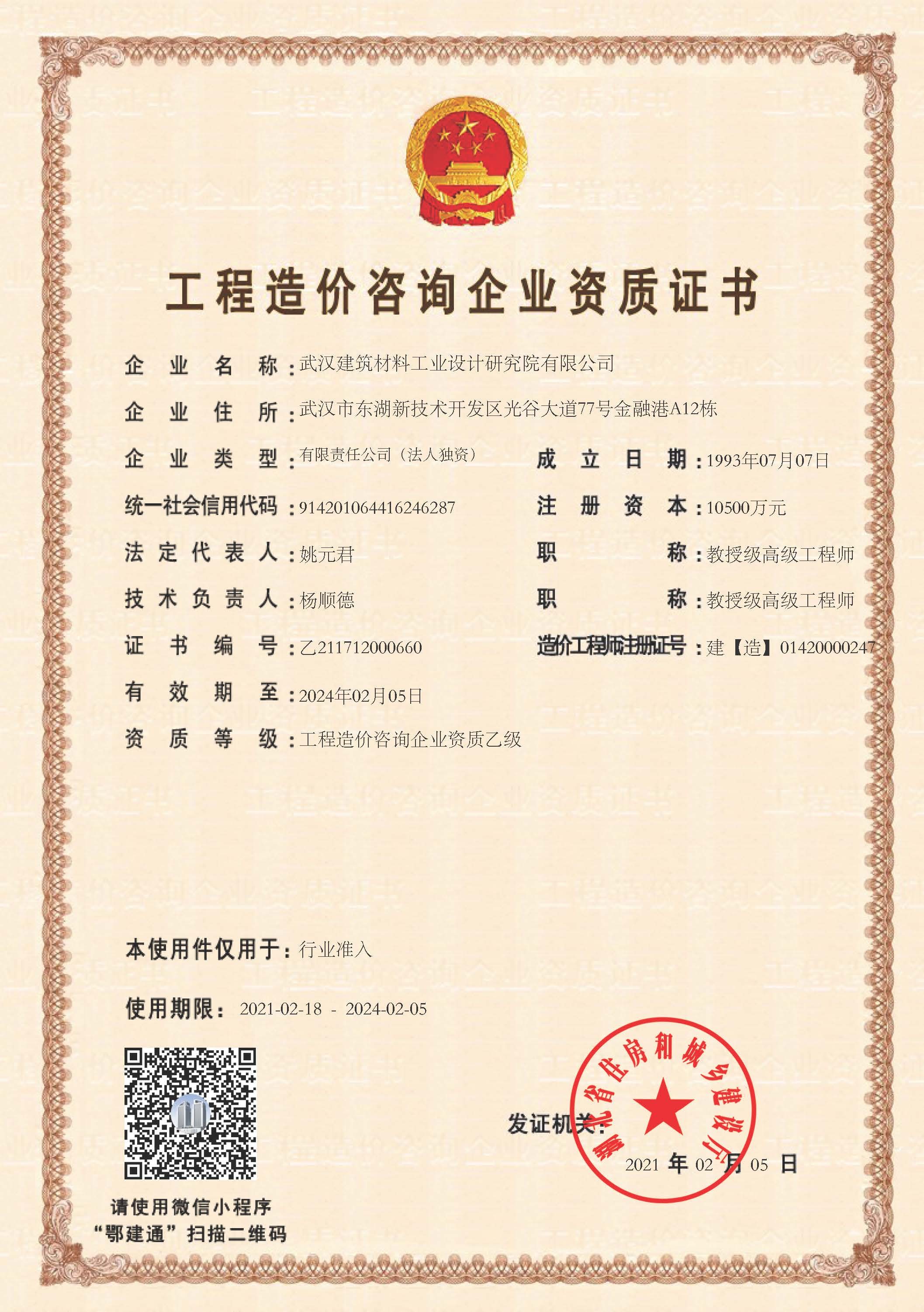 工程造價(jià)咨詢企業(yè)資質(zhì)證書