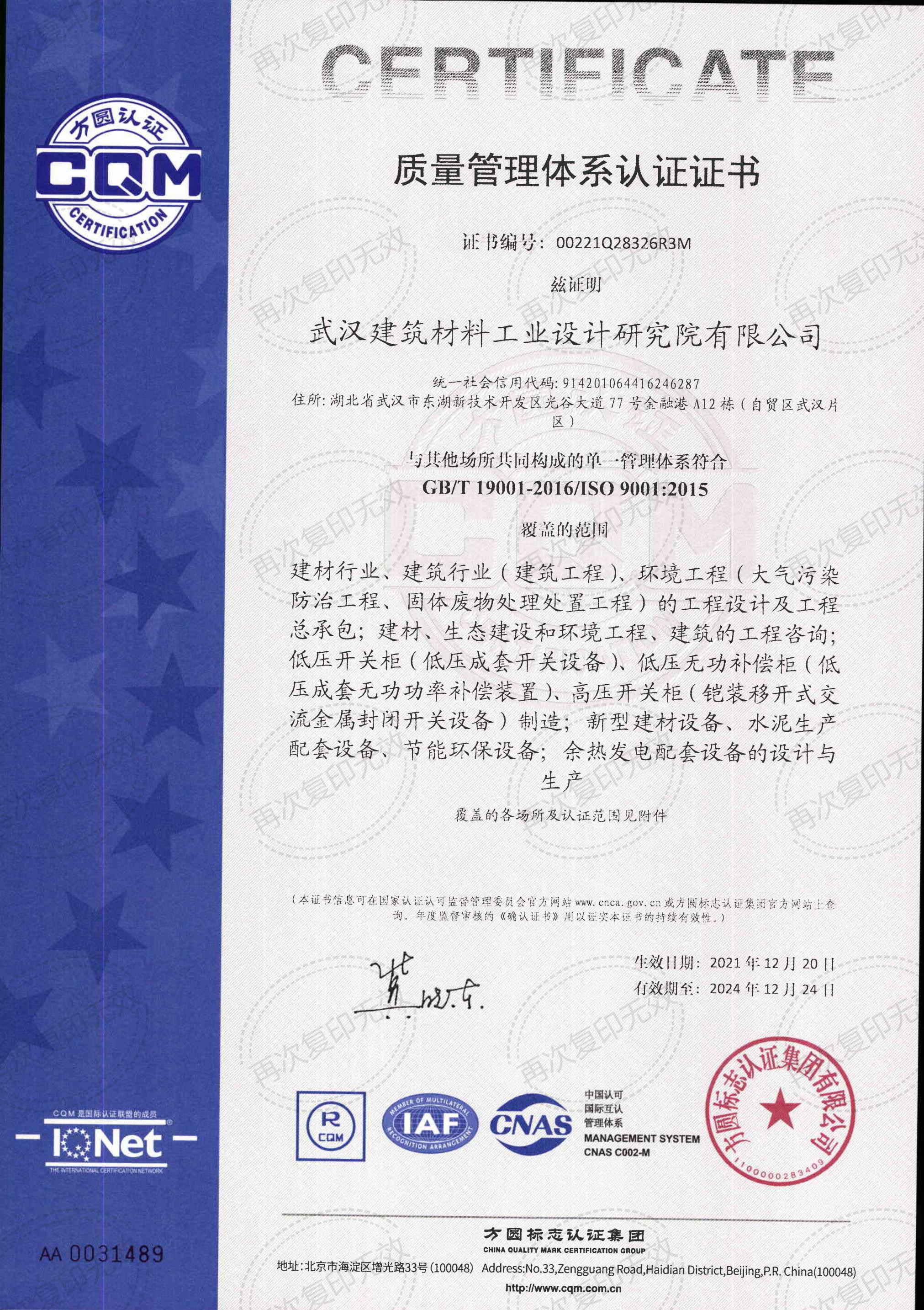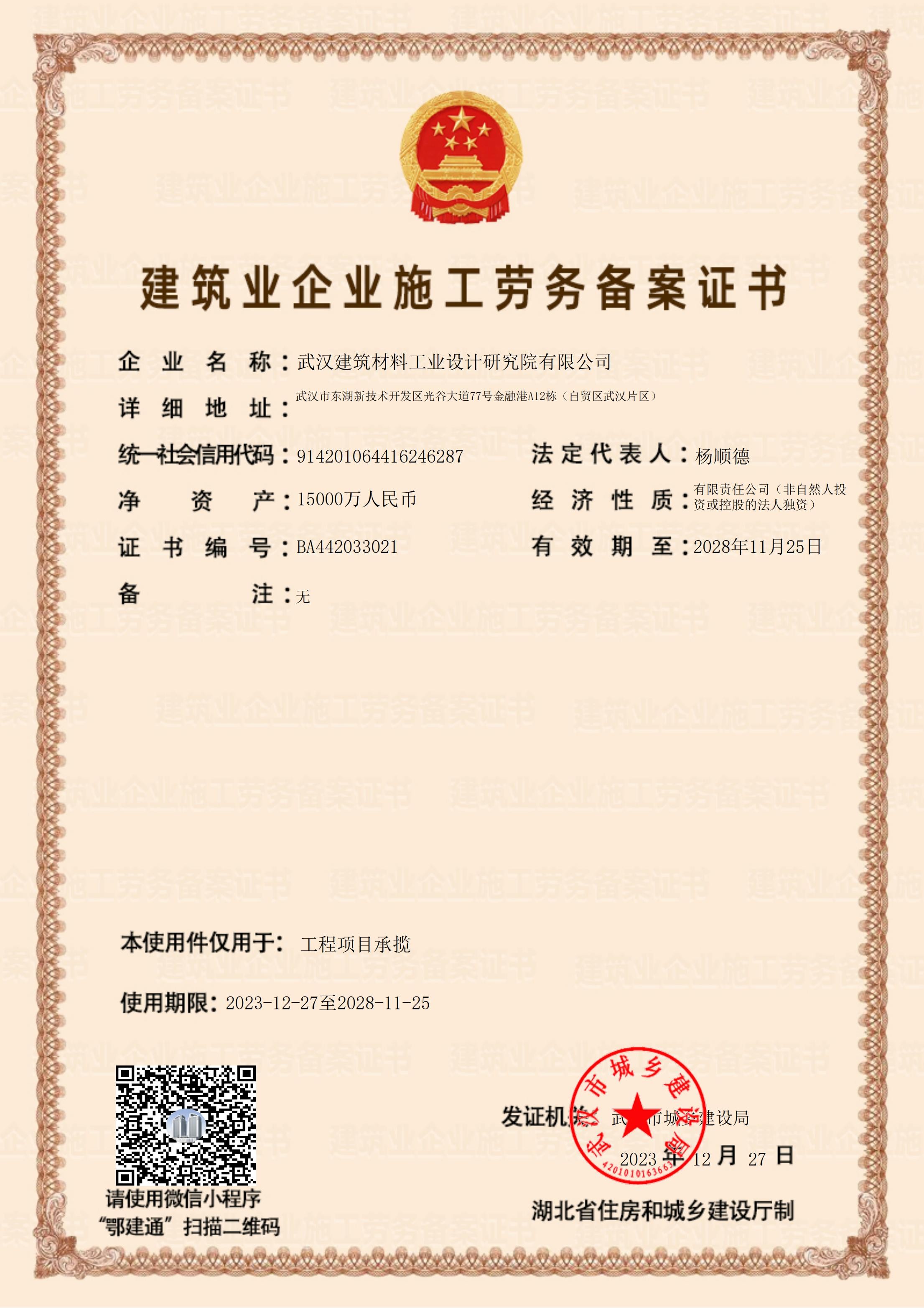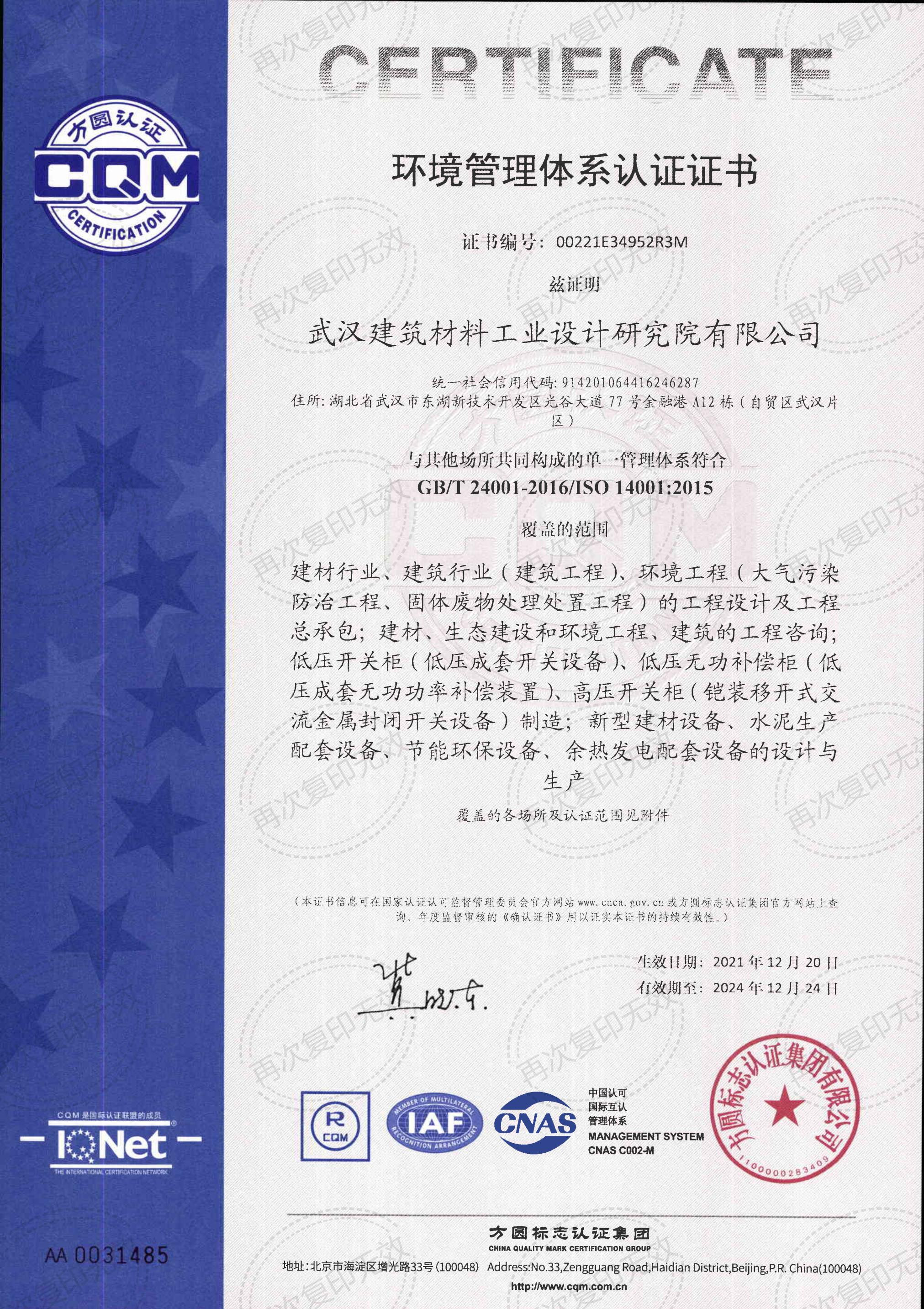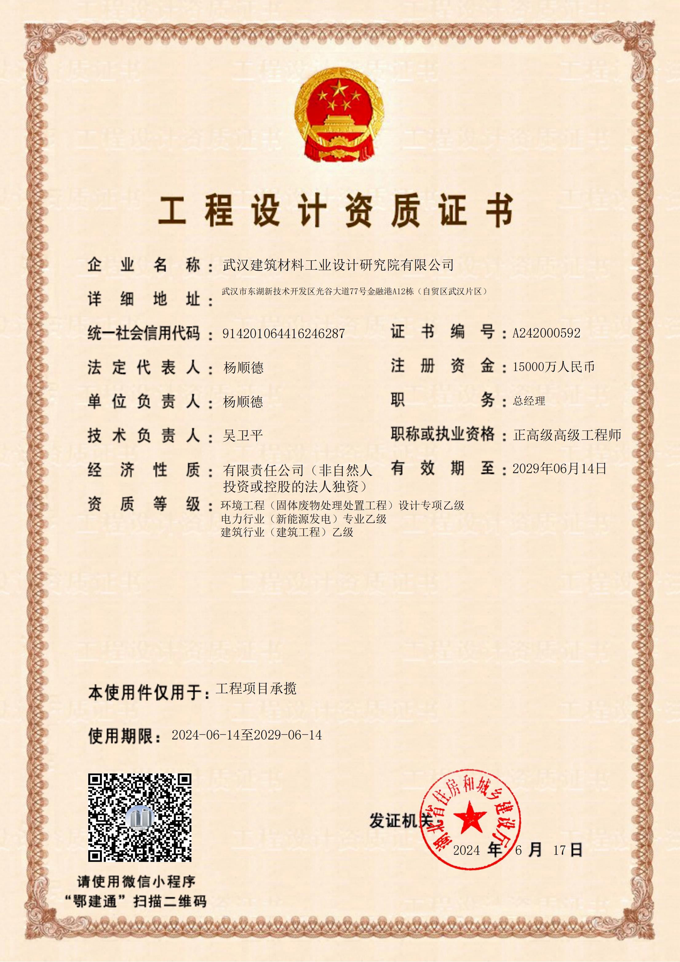 工程設(shè)計(jì)甲級(jí)資質(zhì)證書(建材行業(yè);環(huán)境工程)