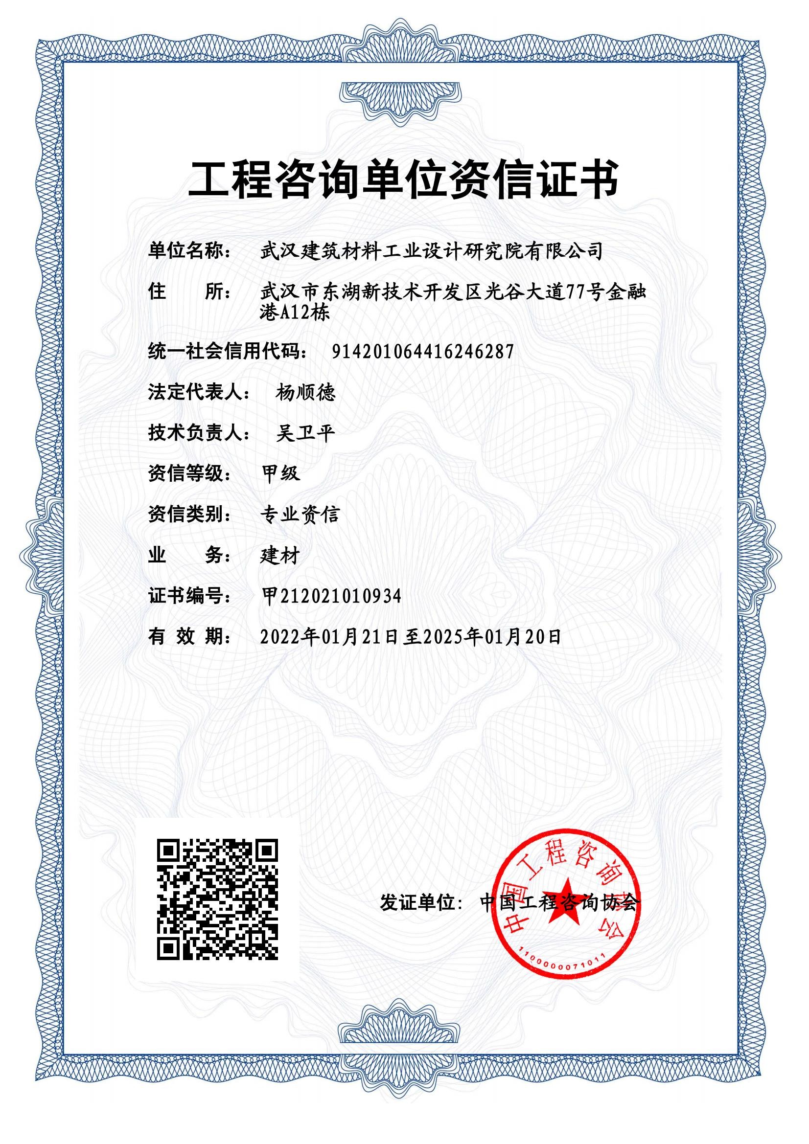 工程咨詢單位甲級(jí)專業(yè)資信(建材行業(yè))