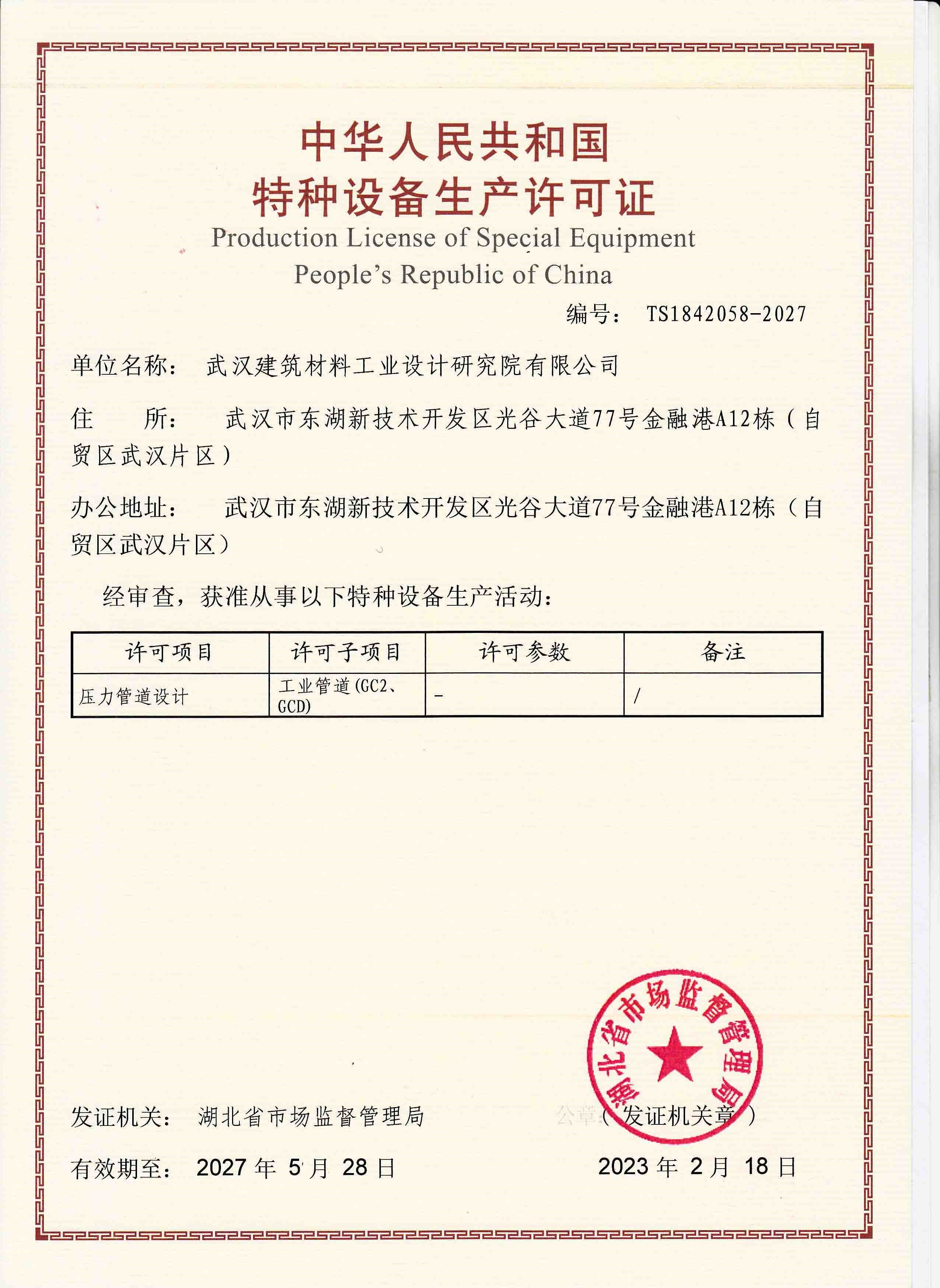 特種設(shè)備設(shè)計(jì)許可證(壓力管道)