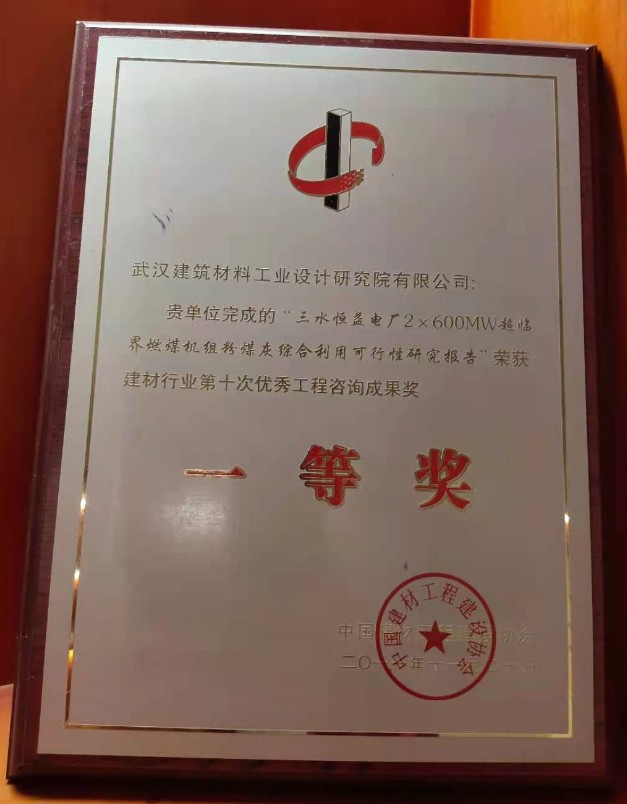 建材行業(yè)第十二次優(yōu)秀工程咨詢成果一等獎