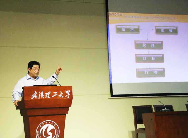 4月3日下午,由武漢理工大學(xué)研究生院、學(xué)生就業(yè)指導(dǎo)中心和機電學(xué)院共同舉辦的“成功之路名企面對面——中國中材集團(tuán)武漢建筑材料工業(yè)設(shè)計研究院有限公司報告會”在武漢理工大學(xué)會議中心301舉行。武漢院有限公司副總經(jīng)理徐征、總經(jīng)理助理胡曦、技術(shù)研發(fā)部副部長劉勇勇等應(yīng)邀作報告交流。武漢理工大學(xué)機電學(xué)院黨委副書記萬林波出席報告會,機電學(xué)院300多名學(xué)子聆聽了此次報告會。