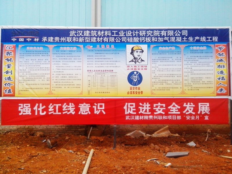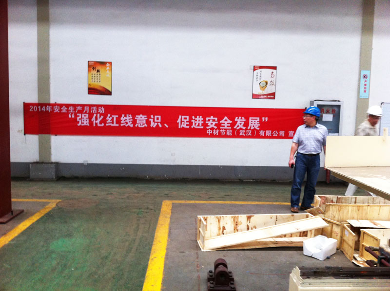 6月上旬, 在公司辦公樓、節(jié)能(武漢)車間、項(xiàng)目部現(xiàn)場(chǎng)懸掛安全生產(chǎn)的宣傳橫幅。