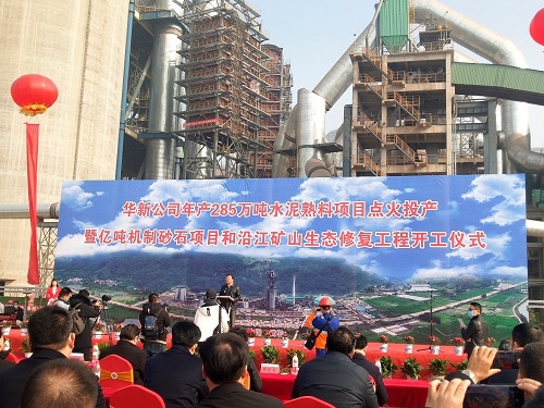 2020年12月28日,我公司姚元君董事長(zhǎng)受邀參加華新水泥股份有限公司年產(chǎn)285萬噸水泥熟料項(xiàng)目點(diǎn)火投產(chǎn)暨億噸機(jī)制砂石項(xiàng)目和沿江礦山生態(tài)修復(fù)工程開工儀式。