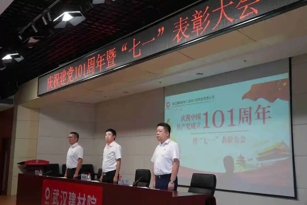 6月29日下午,武漢建材院隆重召開慶祝建黨101周年暨“七一”表彰大會,紀念黨的光輝歷史,筑牢跟黨走的理想信念,表彰在黨員爭先創(chuàng)優(yōu)各項工作中表現(xiàn)突出的優(yōu)秀共產(chǎn)黨員、優(yōu)秀黨務工作者和先進黨支部。大會由公司總經(jīng)理、黨委副書記楊順德主持,黨委書記白寧作慶祝建黨101周年講話。會議組織全體黨員重溫入黨誓詞。