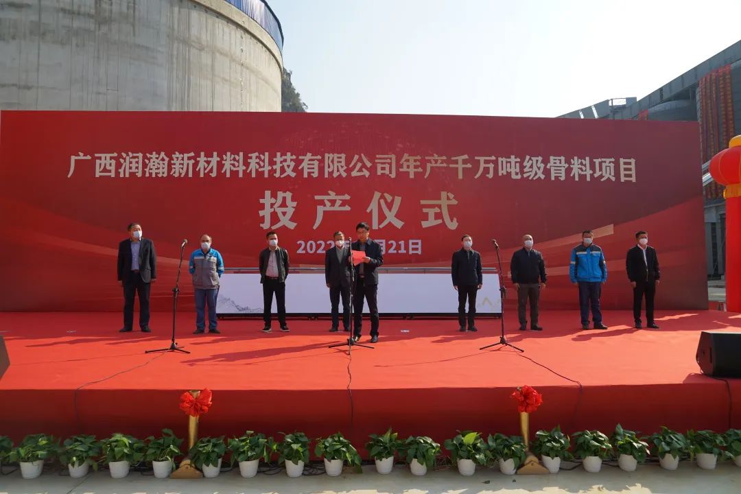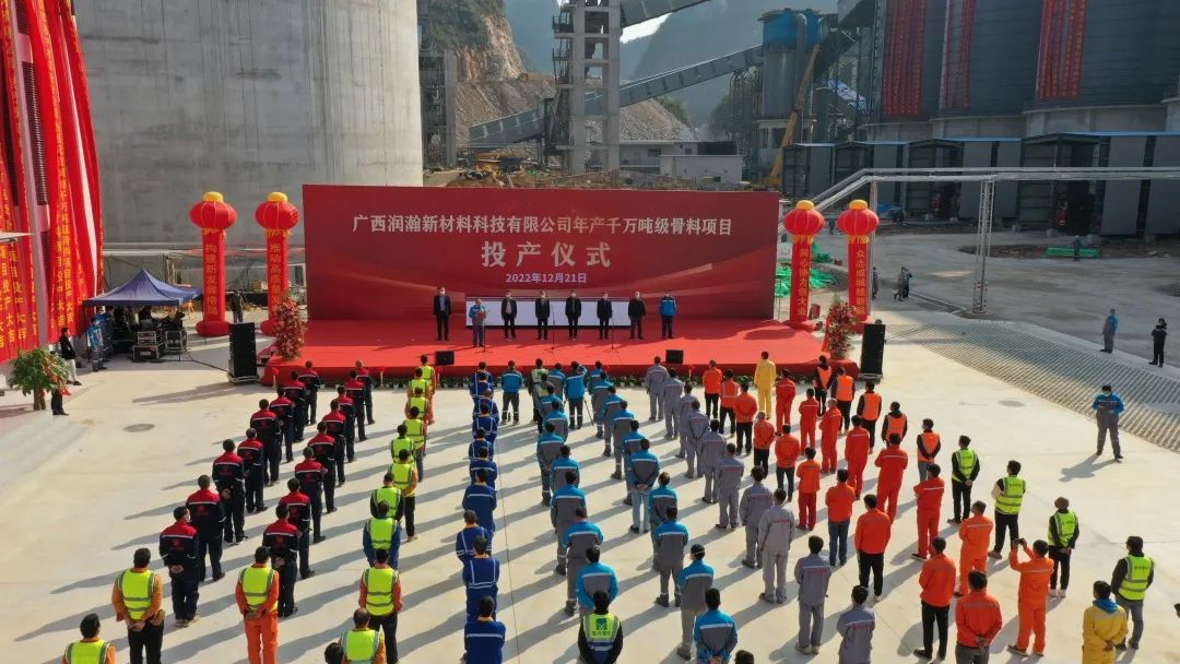 2022年12月21日,由武漢建筑材料工業(yè)設(shè)計(jì)研究院有限公司(以下簡稱為“武漢建材院”或“公司”)總承包的廣西潤瀚新材料科技有限公司年產(chǎn)千萬噸級(jí)骨料項(xiàng)目(以下簡稱為“華潤潤瀚骨料項(xiàng)目”)舉行投產(chǎn)儀式。