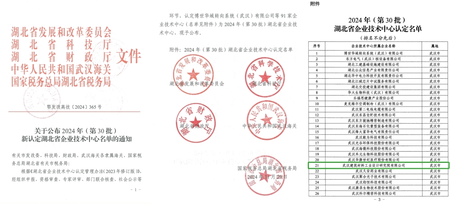 近日,武漢建材院通過2024年(第30批)湖北省企業(yè)技術中心認定。湖北省企業(yè)技術中心是根據(jù)創(chuàng)新驅動發(fā)展要求、經濟結構調整和產業(yè)高質量發(fā)展需要,對創(chuàng)新能力強、創(chuàng)新機制好、引領示范作用大、符合條件的企業(yè)予以的認定,鼓勵引導行業(yè)骨干企業(yè)帶動產業(yè)技術進步和創(chuàng)新能力提高,是對行業(yè)骨干企業(yè)研發(fā)創(chuàng)新能力的充分肯定。未來,武漢建材院將繼續(xù)加大技術創(chuàng)新投入和人才培育力度,加快推進技術創(chuàng)新體系建設,從根本上提高公司核心競爭力。